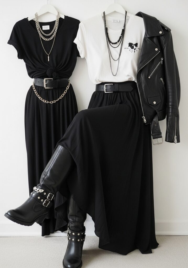 Investing in quality black long skirt outfits pays off because black long skirts offer remarkable versatility. They serve as a foundational piece that can pivot between casual, office, travel or evening wear—meaning fewer items for more combinations. With careful styling, a good black skirt becomes one of the highest cost-per-wear items in your wardrobe. Beyond versatility, the silhouette of a long skirt elongates the legs and creates a polished look without trying too hard. Additionally, styling guides confirm that a black maxi skirt is far from “boring” when paired right—side slits, textured fabrics, and layering strategies all keep it fresh. Who What Wear+1 Over time, opting for quality materials and classic cuts ensures your investment transcends trends and remains elegant for years.