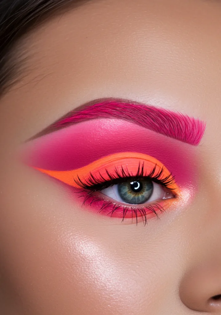 Neon eye makeup is all about bold color, creative flair, and making a statement. It involves using high-pigment, electric shades—like neon pinks, greens, blues, and oranges—to create vibrant eye looks that grab attention instantly.